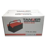 جعبه ابزار ۳۵ سانتی متر پرچ های بسیار محکم جنس دسته ار جنس ABS قابلیت بازو بسته شدن به صورت اتوماتیک دارای پوشش رنگ الکترواستاتیک ضد خش امکان افزودن قفل