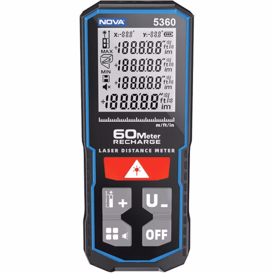 متر لیزری نووا مدل 5360 ظرفیت ۶۰ متری شارژی نور قرمز