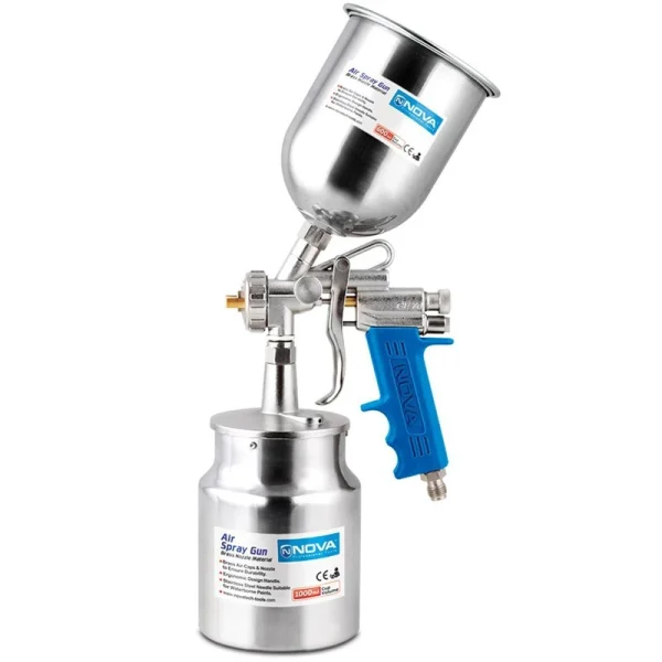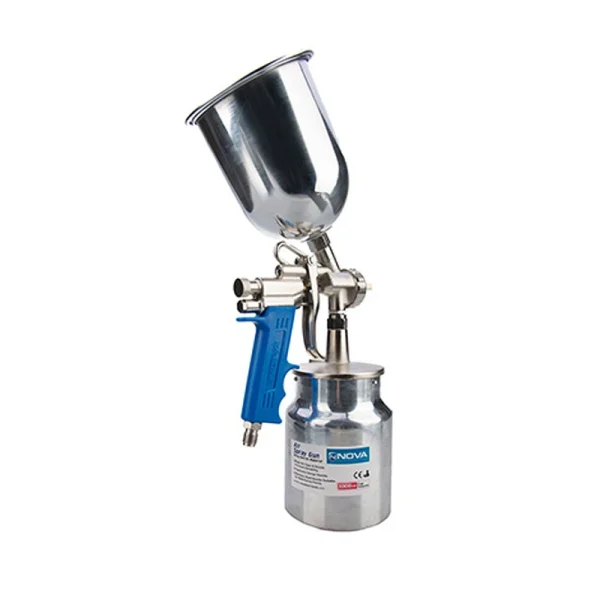 -دارای یک عدد مخزن ۶۰۰ سیسی در بالا و یک مخزن ۱۰۰۰ سیسی در پایین پیستوله -دارای درپوش هوا و نازل ساخته شده از فلز برنج جهت ماندگاری بهتر