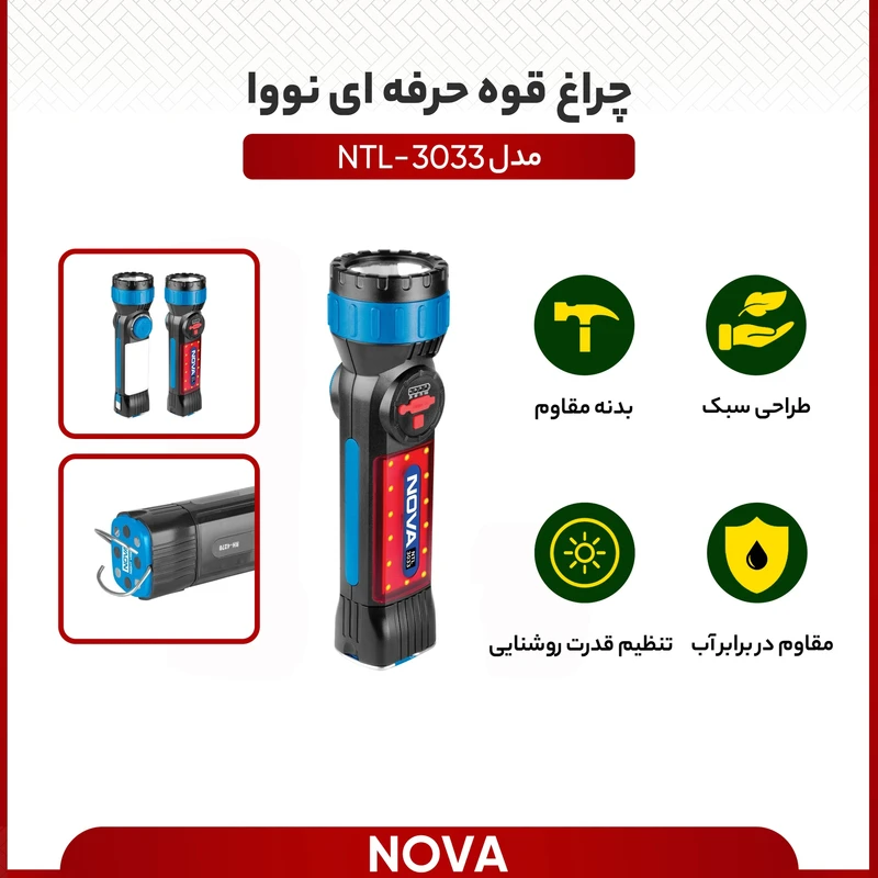 چراغ پیشانی شارژی 8 وات 650 لومن نووا دارای سنسور حرکتی مدل 3048